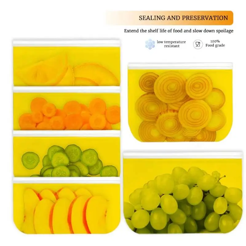 Crafted from 100% food-grade silicone, these bags offer a flexible yet durable alternative to traditional plastic zip-locks, ensuring your fruits, vegetables, and liquids stay fresh for longer.